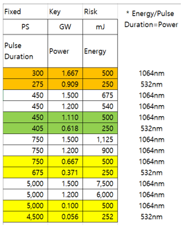 4. If the pulse duration is longer than 300ps, you can see in the calculation table below,